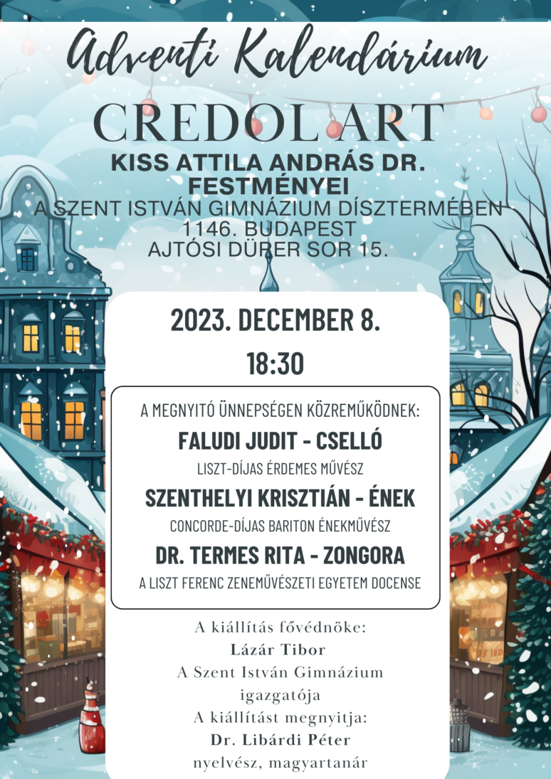 Dr. Kiss Attila festőművész kiállítás-megnyitója a Díszteremben 2023. december 8. 18.30-kor.