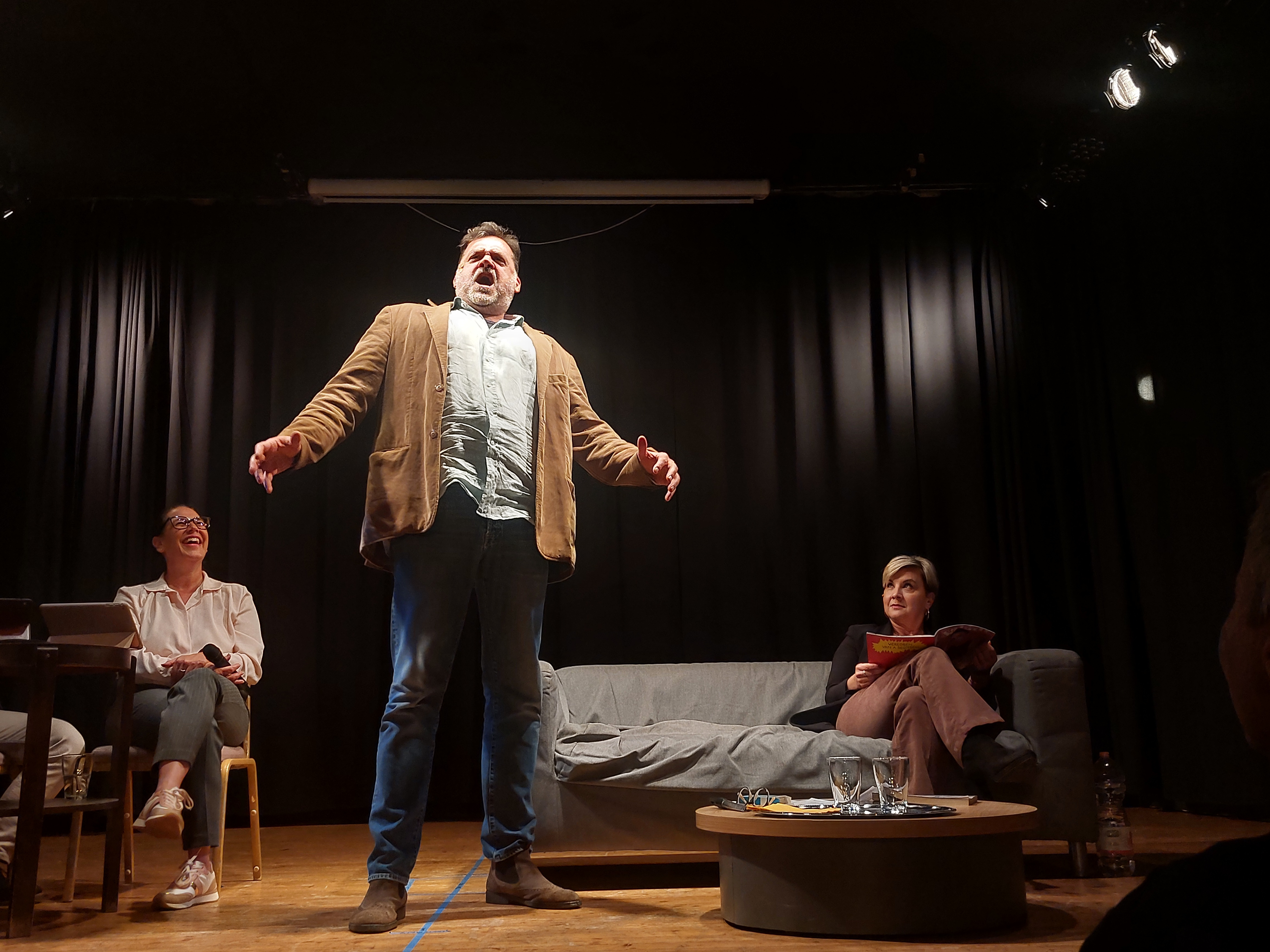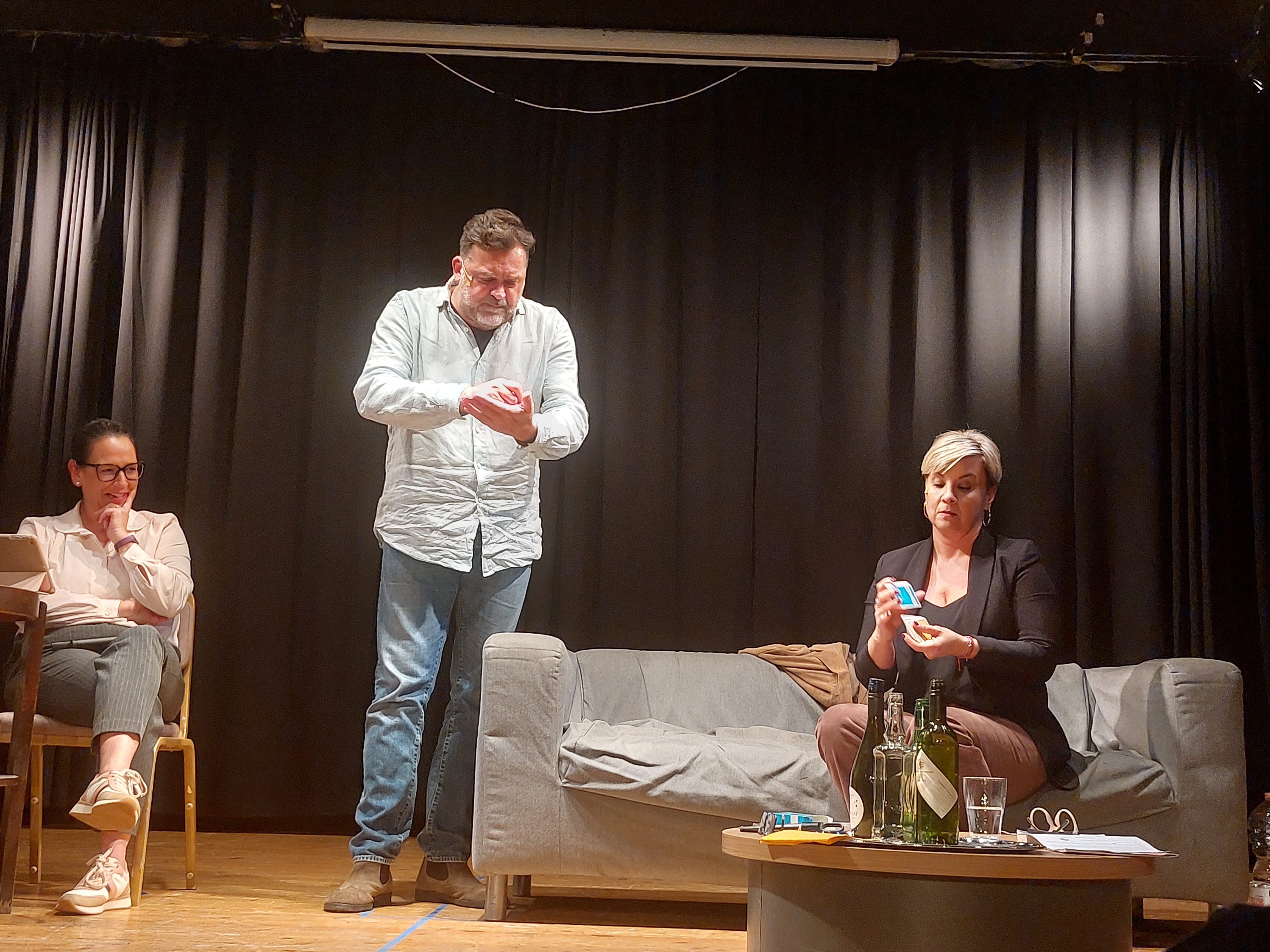 Ábel Anita és Ficzere Béla rövid jeleneteket játszottak el, ezt követően Gönczi Dorka mediátor és Varga Zsolt kommunikációs szakértő elemezték a szituációt, illetve kapcsolódó történeteket meséltek a praxisukból.