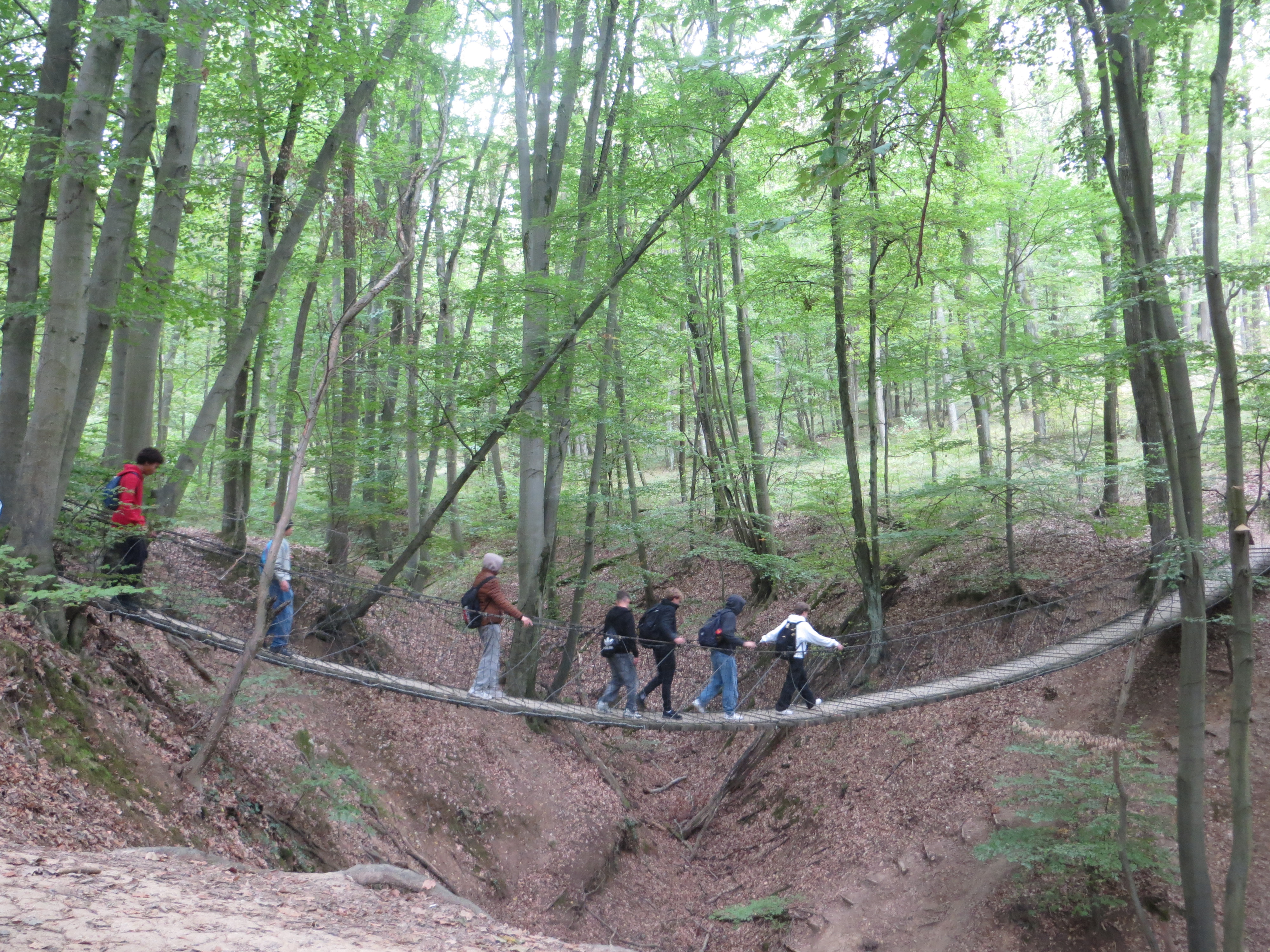 A második nap Szendehely közelében Katalinpusztára látogattunk el, ahova már Csupák Adrien tanárnő is elkísért minket, illetve többen a 9. B osztály tanulói közül. A reggeli esőzés után nagyon szép cserestölgyes erdőn vezetett át az utunk. A Gyadai tanösvényen haladtunk végig. Gombák sokasága sorakozott fel előttünk: őzlábgombák, galambgombák, tinóruk, sárga kénvirággombák, világító tölcsérgombák és még sok más. Tájékoztató jellegű táblák és jelzések itt is megtalálhatók, a terep fontos erdészetéről is megtudhattunk sok mindent. Többek között a vadgazdálkodás is szerepet játszik ezen a területen. Itt található a Váci püspökség határköve is. A réten most virágzott az Őszi kikerics, mely rózsaszín virágával borította be a felszínt. Utunk során kisebb zápor is ért minket az Óriások Pihenőjénél, de az eső elálltakor újult erővel folytattuk kalandunkat. Túránk vége felé átkeltünk egy jellegzetes függőhídon, amely a leghosszabb Magyarországon, és egy széles, mély völgyön vezetett át. Nagy élmény volt számunkra. A túránk végén már mindenki felismerte a korábban már látott gombafajokat és erdei növényeket. Beszámolóinkhoz sok érdekes fotót készítettünk. Kiselőadásainkat az Iskolanyitógató rendezvényen fogjuk bemutatni november 14-én.
