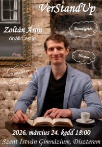 A VerStandUp Zoltán Áron fiatal színművész remek találmánya. Kicsit beszélgetés, kicsit filozofálás, nagyszerű versmondás, elemzés. Mindenképpen szórakoztató és a verseket megszerettető eredeti előadás.