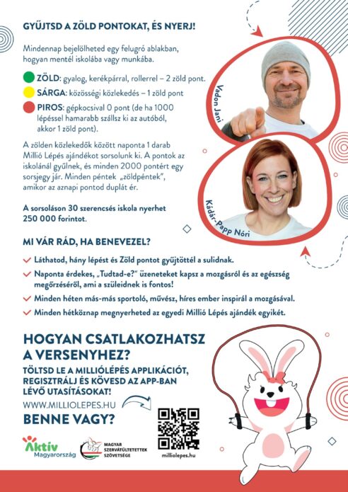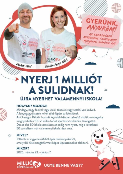 Az Aktív Magyarországért Felelős Államtitkárság idén tavasszal is meghirdette a Millió lépés az iskoládért szabadidős programot.