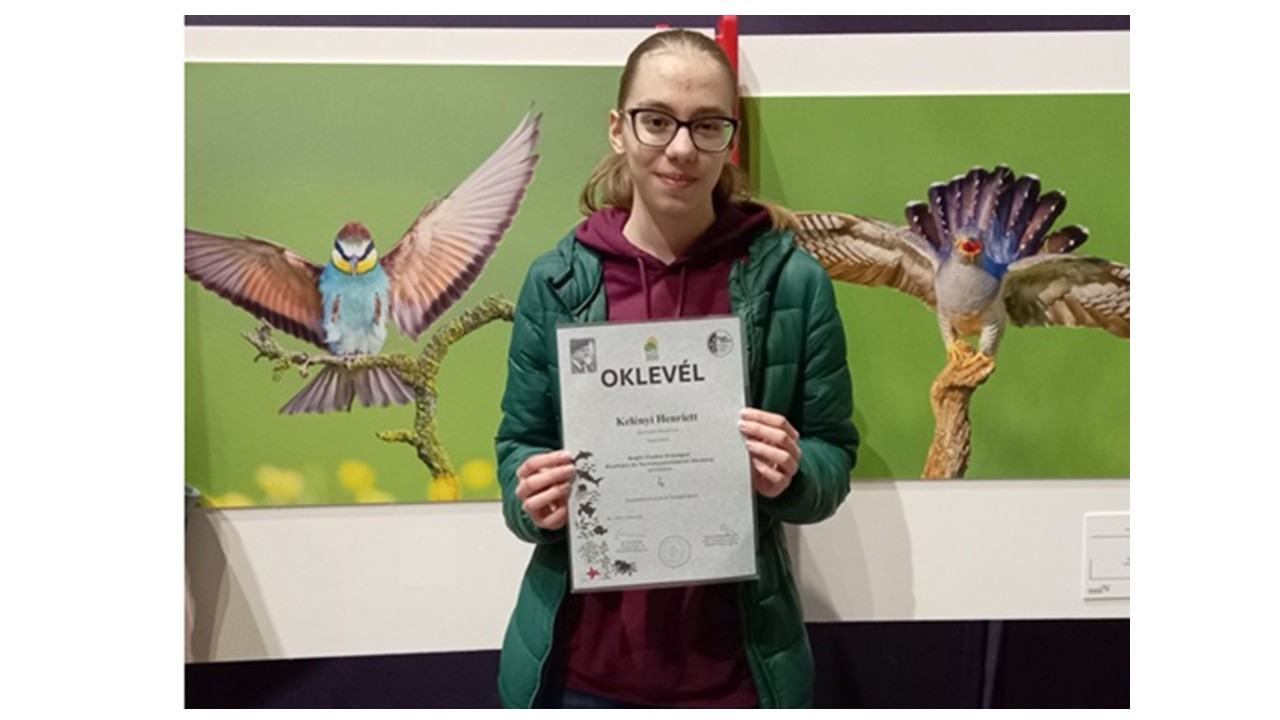 Kelényi Henriett 9.b osztályos tanuló 4. helyezést ért el az Anghi Csaba Országos Állattani és Természetvédelmi Versenyen.